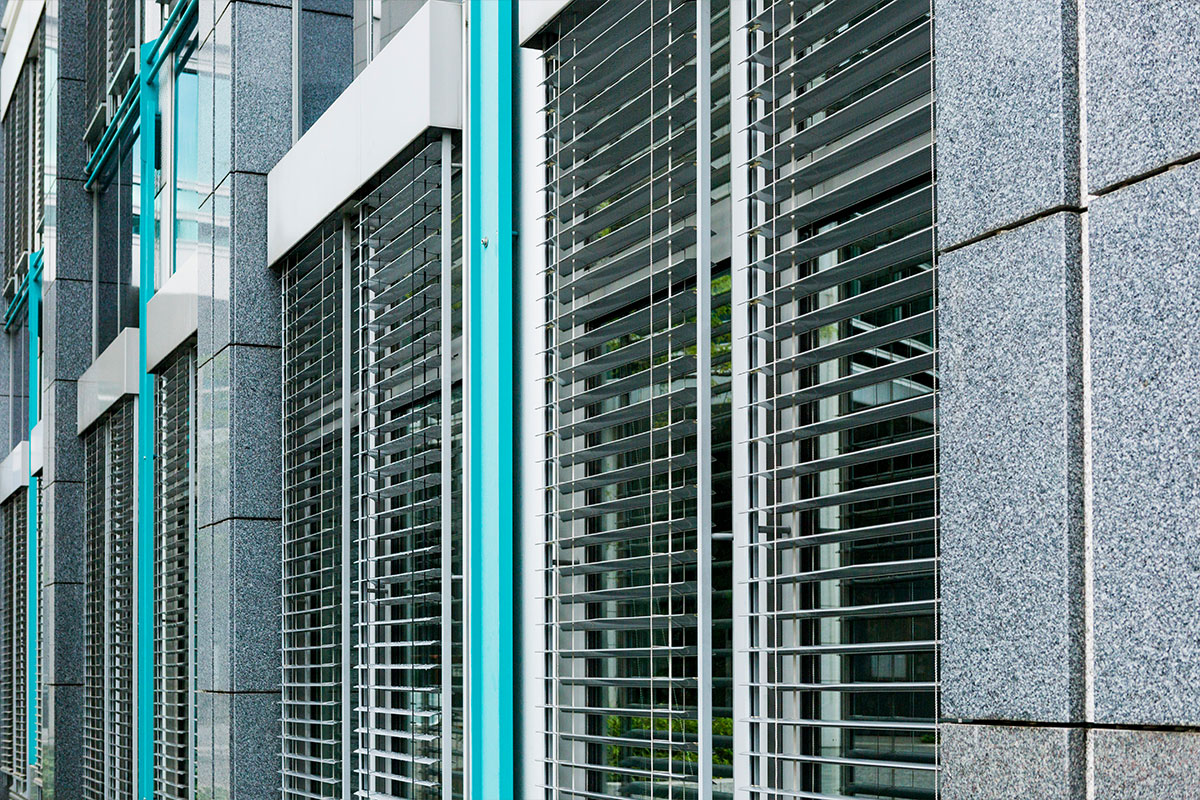 Zur Reinigung werden die Jalousien, die im Gebäude hängen, ausgebaut und extern in einer Werkstatt gereinigt.